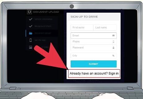Visit the Uber Driver sign up page. Open a web browser on your computer and visit get.uber.com/drive to get started. It's easiest to sign up through a computer, but you can also use the Uber Driver app and follow essentially the same process.