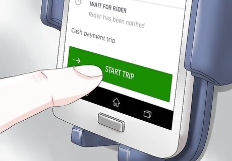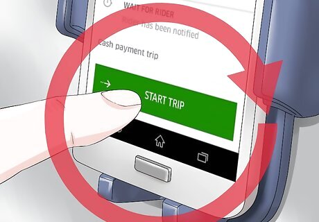 Drive around until you receive a trip request. You'll receive trip requests when you are the closest car to the rider when they request a ride. Try to drive around busy areas to ensure that you're receiving lots of requests.