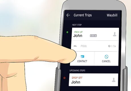 Contact the rider if they aren't showing up. If your rider hasn't appeared after a couple minutes, you can contact them through the app: Tap the Checklist button in the upper-right corner. Tap the Contact button under your rider's name. Send a text message to the rider.