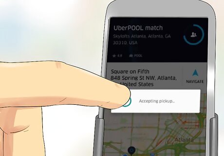Tap your screen to accept a ride request. You'll have 30 seconds to accept the request before it is given to another driver. You're rated on how quickly you accept requests, so it's recommended that you tap it as soon as it appears. When a ride request appears, tapping anywhere on the screen will accept it.