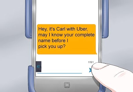 Ask the rider's name before they get in the car. Make sure you're picking up the right person. This is especially important in busy areas where multiple Uber drivers may be operating. It is illegal to pick up riders who have not requested a ride through the Uber app.