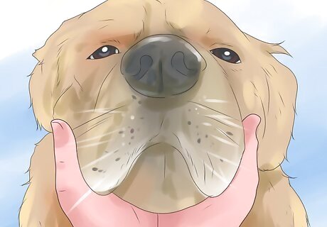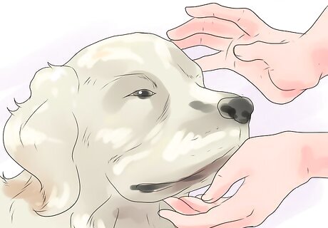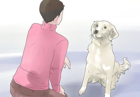 Pet your dog with purpose. Another thing you can do to deepen your bond with your dog is to pet him with purpose. Don’t just pet your dog absentmindedly when you’re staring at your computer, talking to a family member, or watching TV. Let your dog see that you really care about him by petting him while looking him in the eyes and telling him he’s a good boy and making sure to give him a little love. You can even call him toward you to begin the petting session. Using his name as you pet him reinforces your bond with your dog.