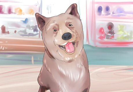 Let your dog pick out a toy. Another thing you can do to reinforce your bond with your dog is to let him pick out his favorite toy at the pet store. Take him to the store and give him a few minutes to explore the options and to pick the toy that he’s the most drawn to. Often, it won’t take very long for your dog to zero in on a new addition to his toy bin. Take the time to let him pick something out, buy the item for him, and then go home and play with it. This will show your dog how committed you are to his happiness. You don’t need to get him a new toy very often, either. This won’t necessarily help you bond, but taking the time to pick out the perfect toy every once in a while will strengthen your connection.