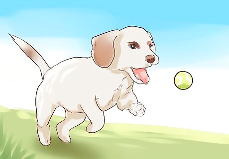Play catch with your dog. If Frisbee is too fancy for you and your dog, you can always play catch with him, whether you’re using a baseball or an old bone. Whatever treat or toy you’re using, make sure your dog really likes running after it and bringing it back to you. If he’s a puppy, you may have to spend some time teaching him to properly play. Playing catch lets your dog see that your time together isn’t all about business, and that sometimes, you just need to have some good clean fun together.