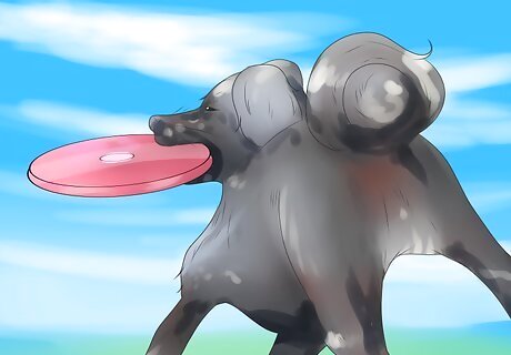 Play Frisbee with your dog. Another way to bond with your dog is to play Frisbee with him. Take him out to a park or to your yard, if you have enough room, and spend at least 15 minutes tossing the Frisbee to your dog, letting him catch it in his mouth, and waiting for him to bring it back to you. This game can give both you and your dog a great workout and can make you feel even closer to each other. You can make a ritual of it by taking your dog to a park every weekend, letting him know that this will be your “Frisbee time.”