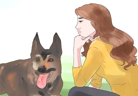 Spend time together. The best thing you can do to bond with your dog is really to spend some quality time with him. Just carving out the time to really pay attention to your dog and to give him the love that he so badly deserves is the best thing you can do to strengthen your bond. Though trying new activities to keep things interested and to keep your dog happy can make a difference, the important thing is that you’re spending time with your dog, whether you’re watching TV in bed together, going for a walk, or just hanging out in the yard. It can be hard to make time to be with your dog, especially if you have a demanding work or school schedule. Though giving your dog your full attention when you’re together is the best thing you can do, being around the home when he’s there while doing something else is better than nothing. If you can find a way to do some of the work or studying that you would normally do away from the house at home, your dog will appreciate it and will feel closer to you.
