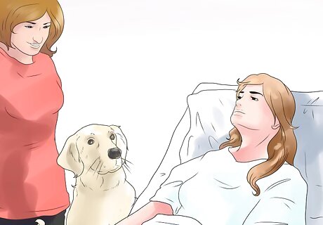 Take your dog to a nursing home or hospital. Some nursing homes or hospitals have programs that allow you to bring in your dogs to help cheer up sick patients. Look into your neighborhood hospitals and nursing homes to see if you can bring your dog to one of these programs. This can be a great way for you and your dog to share the love with people in need and to bring joy to their lives. Your dog will love the social time and the attention and will appreciate the effort you’ve made to bring him to a new environment. It’s a win-win situation. Not only will you be helping out your community, but you’ll be bonding with your dog in a new way.