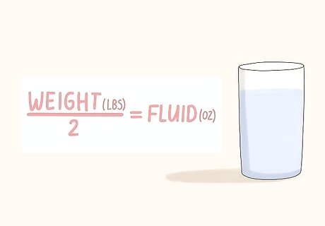 Drink plenty of water to stay hydrated and make fasting easier. Increasing your water consumption when you are fasting is essential to keep you hydrated. Dehydration can lead to fatigue, headaches, and muscle weakness. An adequate amount of water will also take up some room in your stomach to make fasting a little easier. Drink half of your weight in ounces per day. For example, if you weigh 160 pounds (73 kg), drink 80 fluid ounces (2,400 mL) per day.