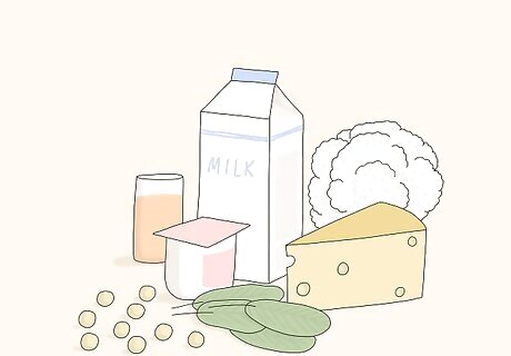 Eat foods rich in calcium and Vitamin D to keep your bones healthy. Fasting puts you at risk for deficiencies in these two essential nutrients. When you break your fast, aim to have 2 to 3 servings of fortified dairy products like milk, yogurt, and cheese per day. Green vegetables (collards, kale, broccoli rabe, soybeans), fortified orange juice, and nut-based milks also contain ample amounts of calcium and Vitamin D. Women 50 (and under) and men 70 (and under) need 1,000 mg of calcium and 600 IU of Vitamin D every day. Women over 51 and men over 71 should try to get 1,200 mg of calcium and 800 IU of Vitamin D each day. Talk to your doctor about taking a calcium or vitamin D supplement for the duration of your fast if you think you’re not getting enough or if your family has a history of osteoporosis.