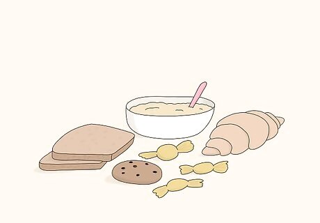 Avoid sugars and refined grains that can cause blood sugar spikes. Sugars and refined carbohydrates are easily converted into glucose, causing you to feel a short “high” followed by a longer “low.” The crash will leave you feeling irritable, sluggish, and hungry, which will make it harder to fast. Stay away from breads and pastas made with white flour, sugary cereals, soda, candy, and pastries.