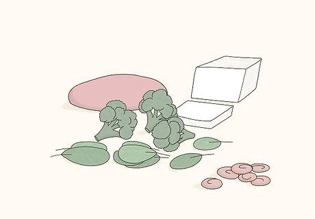 Eat iron-rich foods to prevent anemia. Any kind of fasting can lead to an iron deficiency, which can cause fatigue, depression, anxiety, and (over time) anemia. During your eating window, be sure to include some shellfish, liver and organ meats, red meat, turkey, spinach, broccoli, and/or tofu to keep your body healthy and your mood stable. If you suspect you’re low in iron, talk to your doctor about taking an iron supplement. The daily recommended dose is 18 mg per day for women and 8 mg per day for men. Vegans and vegetarians are especially prone to anemia, so if you are a plant-based eater, be vigilant about your iron intake.
