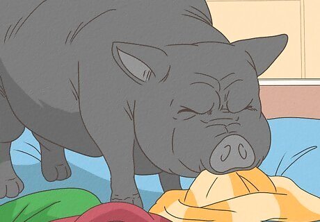 Know what to look for. Some pet pig owners notice changes in their female pigs when they come into season. Their pigs may have accidents in the house and carry household items back to their bed. This will pass at the end of heat, but spaying is the only way to eliminate this behavior.