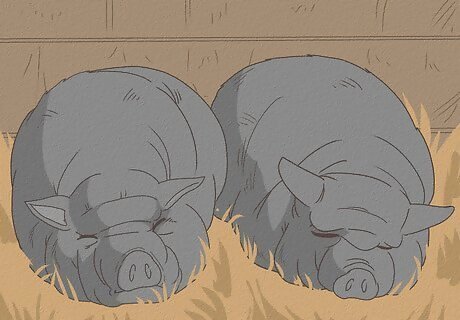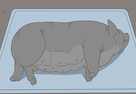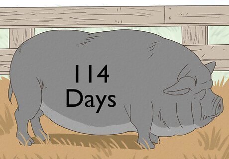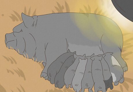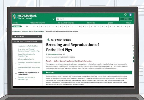 Find a suitable mate for your pot bellied pig. Do a little research on pig genetics to foresee the possible traits the piglets will have according to the backgrounds of both parents. Breeding for specific qualities and looks can help sell them faster and for better prices. Most female potbellied pigs reach sexual maturity between the ages of 3 to 4 months of age. Female potbellies come into heat every 21 days. Heat can last 6 days, during which time your pig will have a swollen, reddened vulva. The males usually are sexually mature by 90 days. Some pigs can breed even earlier than 3 months, depending on their own genetics, housing, weight, and growth rate.
