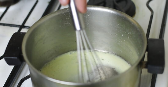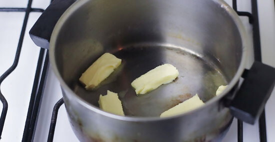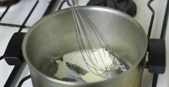 Whisk the butter constantly as it melts. Once you start whisking, don't stop! If you stop, the butter will burn on the bottom of the pan. Keep the butter moving to prevent this. Don't whisk too vigorously. If you do, the hot butter could splash out of the pan and burn you.