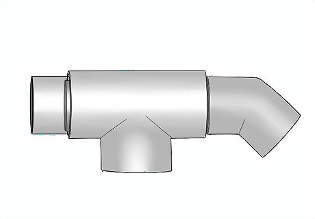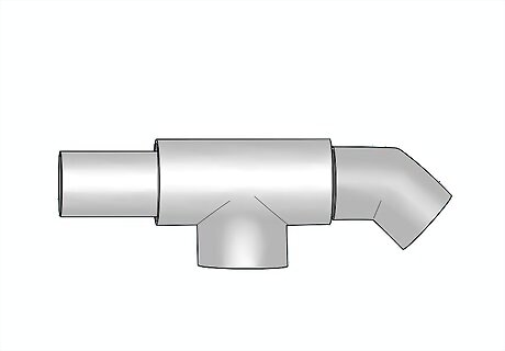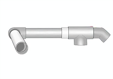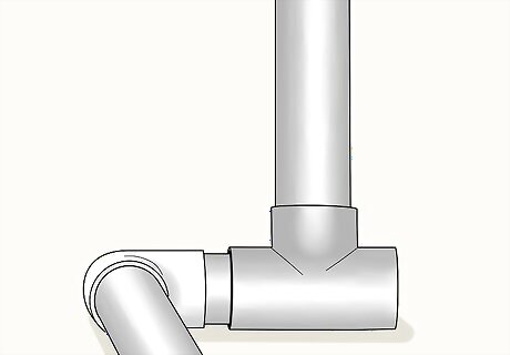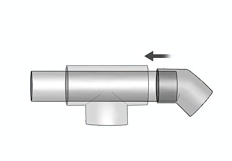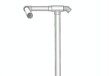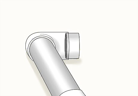 Position a 10 in (25 cm) pipe on the 90-degree elbow. Use a pipe that is 1 ⁄2 in (3.8 cm) in diameter. Add glue to the end, then push it as far as you can into the elbow. Twist it clockwise until it is tightly in place.