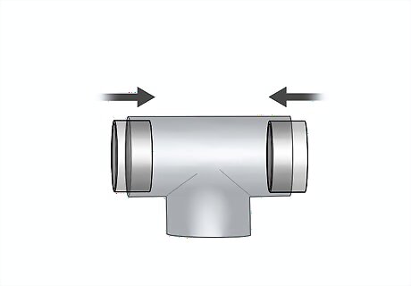 Fit the 1 ⁄8 in (3.5 cm) pipes into the tee. The tee is just a T-shaped connector, so it’s not too tough to deal with. The cut pipe lengths fit directly inside the opposing ends of the tee. Push them all the way in until they are flush with the tee. Take your time to ensure the pipes are positioned correctly. Consider setting up all the pipes first, then cementing them together once you’re sure they are in the right place.