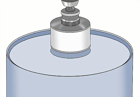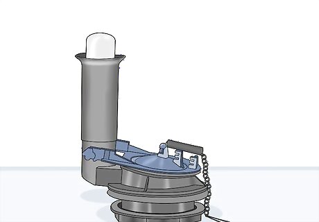Cut a hole through the center of the bucket for the valve. Use a 3 ⁄4 in (8.3 cm) hole saw to make a neat hole. Keep the bucket firmly on the ground with the bottom up as you cut through it. When you’re done, position the valve in it to make sure it fits. Hole saws are designed to cut perfect circles into surfaces like the bucket you’re using. Check hardware stores to see if you can purchase or even rent one. If you don’t have one, try using an alternative, like another type of saw or a utility knife. Leaking is a common problem, so consider spreading a silicone sealant around the edges of the flapper. Flappers usually come with a rubber gasket meant to protect against leaks. Twist it onto the bottom part of the flapper emerging from the bucket if you wish.