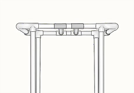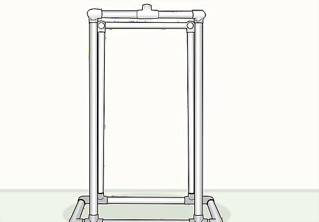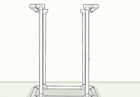 Cement the remaining 30 in (76 cm) pipes between the tees. Place the pipes in the center of the frame. Run a pipe from a tee on the top part of the frame to one on the bottom. Make sure everything is flush and well-connected before you allow the PVC cement to dry. Adjust the pipes as needed before the cement dries. It makes them difficult to disconnect, so don’t cement anything you plan on taking apart.