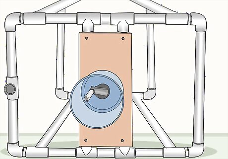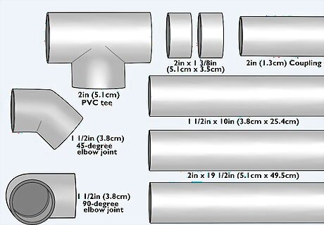 Purchase and cut additional PVC for the frame. The simplest way to build the frame is with PVC, although you could also use wood. PVC is easy to plug in and glue together. It’s also sturdier and easier to take apart than wood. You will need: 4 2 in × 60 in (5.1 cm × 152.4 cm) pipes. 7 {2 in × 30 in (5.1 cm × 76.2 cm) pipes. 4 2 in × 13 ⁄2 in (5.1 cm × 34.3 cm) pipes. 2 2 in × 10 in (5.1 cm × 25.4 cm) pipes. 2 2 in × 6 in (5.1 cm × 15.2 cm) pipes. 2 2 in × 1 ⁄2 in (5.1 cm × 3.8 cm) pipes.