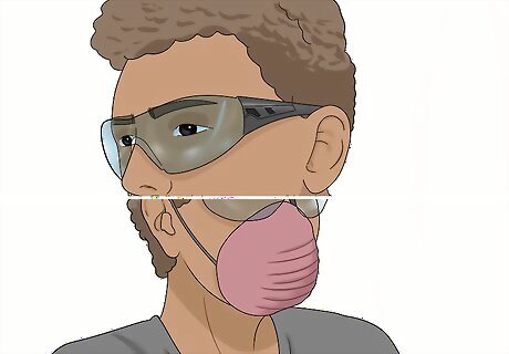 Put on safety gear when cutting material for the tank. Always wear a dust mask and safety glasses for protection. Don’t wear long-sleeved clothing, jewelry, gloves, or anything else that could get caught in the saw blades. Also, keep other people out of the area until you’re done working. Both dust masks and safety glasses are available at most hardware stores. To reduce the mess left behind, work outdoors. If that isn’t possible, open up nearby doors and windows to ventilate some of the dust and fumes from the glue. Consider vacuuming up any remaining dust after you have finished building the tank.