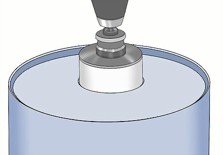 Block the overflow valve on a toilet flusher float valve. Assemble the flusher, then locate the overflow valve sticking out of the top. It is a big pipe, usually black, that opens the flapper when the water reaches a certain level. It will stop your dunk tank from working correctly, so stick a ⁄4 in (1.9 cm) PVC cap into it. Use a silicone adhesive to keep the cap inside the pipe. Check online or at hardware stores for flusher valve kits. It is the same product used in a toilet’s tank to control the water flow. The PVC cap and adhesive are also available there. If the dunk tank spills water on its own, it’s because of the overflow valve. Make sure it is plugged to prevent this from happening.