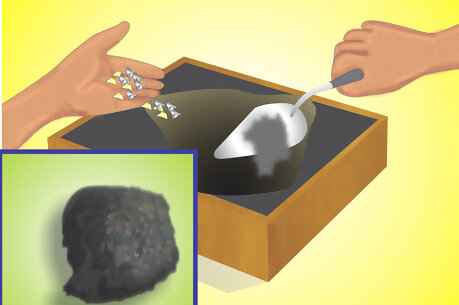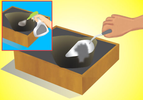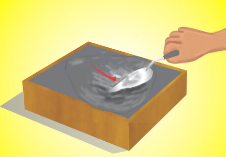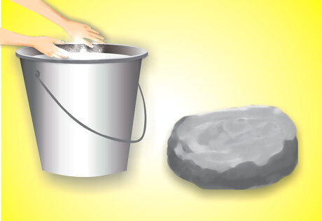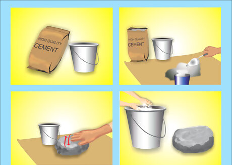 Mix your cement and pour it into the mold. However, to keep it from sticking, you may want to use cooking spray before pouring the cement. Another good method is to rub the rock with petroleum jelly.