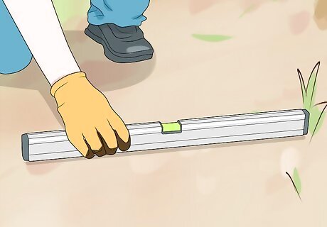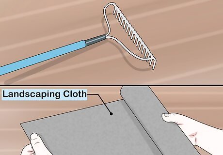 Then, lay down landscaping cloth or a weed barrier. Failure to take this step will result in grass and weeds appearing up through the deck at a later stage. Once you have this laid, cover sparingly with gravel to keep it in place.