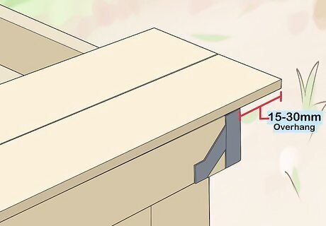 Wait until all the boards are screwed down. Then, you can run a circular saw down the two sides to leave a uniform overhang of 15-30mm all round. You can round the ends of the boards with a router if required.