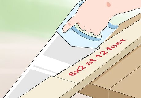 Take measurements and decide what features you want. Do you want it connected to the house? do you require posts, spindles, and a handrail? Will it require stairs? Also you may consider different species of wood as each has different properties and some require less maintenance than others. Let's say your decking is going to be in the middle of your back garden, freestanding with no handrail or steps. If your decking is 12 feet (3.7 m) x 12 feet (3.7 m) then ensure you buy 14 feet (4.3 m) lengths to reduce cost and waste. You will also need 6"x2" lengths for the subframe.Build Simple Square Decking Step 2.jpg