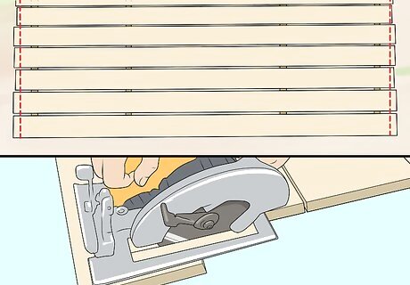 Cut 2 lengths of 6x2 at 12 feet (3.7 m). Hold the two side by side and mark 16" centres. Count how many markings you have and add 2 for either end. In this case you require 13 internals. Now cut the internals by subtracting 4" (thickness of two externals) from 144"(12 ft) leaving you with 140"