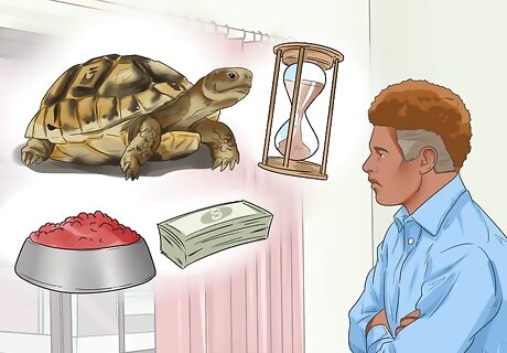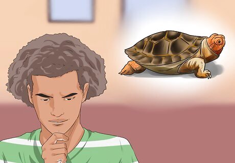 Think about the care requirements for a turtle. Despite the popular perception that turtles are easy to care for, they in fact require specialized, daily care to survive and thrive. Your turtle may live 25 years or longer, depending on the species, so you should be prepared for a long-term commitment. Many turtles require live food, such as mice or insects, to thrive. If you are uncomfortable feeding your turtle live animals, you may wish to reconsider your choice.