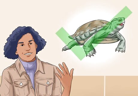 Identify the turtle's sex. Especially if you are considering owning multiple turtles some day, it is important to be able to identify your turtle's sex. Otherwise, you may end up with unexpected babies. Here are some clues to look for: A male turtle typically has a slightly concave underside, while a female turtle's underside is usually flat or slightly bulging. In many species, an adult female will be larger than a male. In some species, such as red-eared or painted turtles, males will have slightly longer fingernails than females. The sex of a turtle can be hard to identify. The seller may be able to help you.