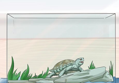 Prepare a big enough habitat. Glass aquariums are the most popular choice for turtle habitats. As a general rule, you should provide a tank with a capacity of 10 gallons (37.9 L) for every inch of the turtle's shell. Be careful to use the measurement for a fully grown adult turtle of the species you select, rather than the measurement of the turtle at the time of purchase. Turtles can and will outgrow their habitat if it isn't large enough.