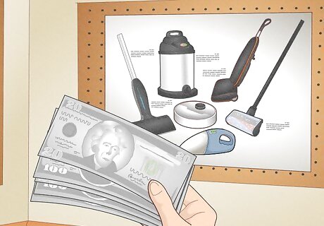 Decide how much you want to spend. The price of vacuums can range anywhere from $20 USD to a few thousand dollars, depending on the brand. Just because a vacuum is expensive doesn't mean it will do well. Conversely, a cheaper vacuum can do as well as a more expensive model, but it all depends on the individual model. However, you may want to spend a little bit more to get a quality machine that will last; a cheaper vacuum may do just as good a job, but it may not hold out as long as a mid-range vacuum. Handheld and stick vacuums tend to be a little less expensive and robot, canister, and upright vacuums tend to be a bit more expensive. You should be able to find a fairly decent vacuum for a reasonable price at a local hardware store or big box store. Many of the popular vacuum models fall in the $30-$50 USD range.