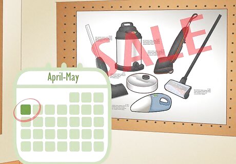 Shop for a vacuum in April or May to save money. This time of year, vacuums are often put on sale. That's because "spring cleaning season" is ending, and stores will be trying to unload any extra stock.