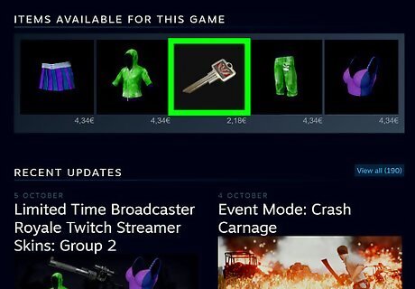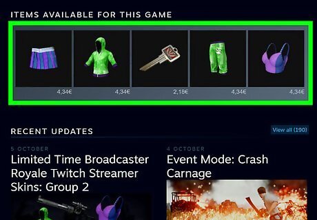 Click any item under ″ITEMS AVAILABLE FOR THIS GAME.″ This displays a list of PUBG items for sale.