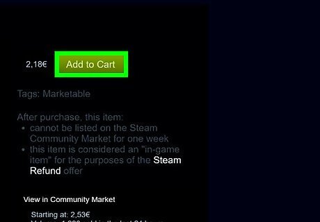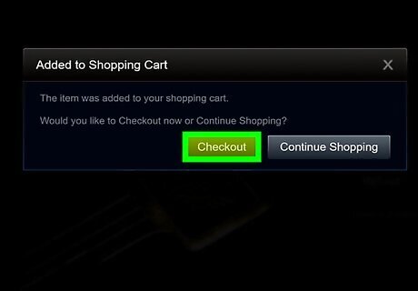 Click Add to Cart. It’s the green button next to the price. The item is now added to your shopping cart. If you’d like to buy more items, click Continue Shopping to return to the list. You can return to the shopping cart at any time by clicking CART at the top of the window (to the left of the search bar).