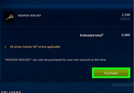 Click Purchase. Once you have enough money in your account, you can click the green Purchase button to finish your transaction. Follow the on-screen instructions to confirm your order. Once purchased, the item will be added to your PUBG inventory.