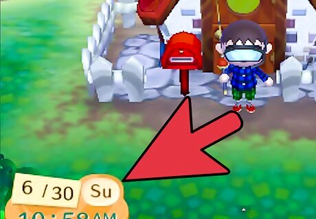 Wait for Sunday. Unlike the stores in the shopping plaza, the turnip vendor is not open on a daily basis. There is no actual "shop" for turnips, as the vendor will wander through the town. She will only appear in the player’s town on Sunday, from 6 .a.m. until noon. If you do not want to wait until Sunday, simply change the date in game. You can do this at the initial screen, when Isabelle is starting the game for you. Before choosing to start your game file, select the option to change something. Isabelle will ask what you want to fix. Select the change time and date option, and set the clock to a time on Sunday between 6 a.m. and noon. However, "time traveling" in ACNL, even just for about a week, can cause "side effects," like bedhead hair, villagers forgetting you, villagers moving away, cockroaches in your house, and other things.