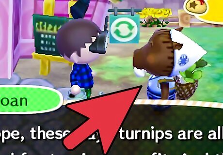 Buy turnips. When you talk with her, select the option to buy turnips. Joan sells batches of ten turnips, with the price ranging between 90–110 bells. This price will not change during the day; however, it will change by week. If the turnip prices are quite high, either buy only ten turnips or just wait until next week. However, take advantage and buy many turnips if prices are low (in the 90-95 range). Turnips can be held in your inventory or stored in drawers within your home.