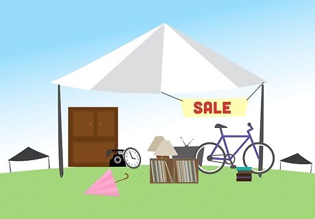 Bargain for records at vinyl fairs and flea markets. These events often bring out collectors and crates of vinyl, some of which is organized, some of which isn't. You can run into hard-core collectors at many events who can help find rare pressings and records, but there are just as many people selling large crates of vinyl with no idea how much any of it is worth. Simply start digging through the crates. When buying records at these places, be sure to bring cash. Be ready to bargain to score deals, holding firm if you know what a record is really worth. If you do your research ahead of time or check prices on your phone you can almost always get great prices.