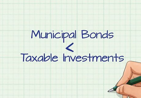 Compare your taxable investments to tax-free investments. Investors can reduce their taxes by purchasing municipal bonds, the interest on which is sheltered from federal and some state and local taxes. However the yield on municipal bonds is typically lower than that of taxable investments. In order to compare the profitability of taxable and tax-free investments, it is very helpful to calculate the after tax yield on the taxable investments.