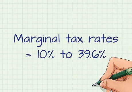 Find the investor’s marginal tax rate. The terms “tax bracket” and “marginal tax rate” are used synonymously. They both refer to the percentage of someone’s income that is paid in taxes. The higher a person’s income, the more they pay in taxes. Marginal tax rates range from as low as 10 percent to as high as 39.6 percent. The income limits for each tax bracket differ for single filers, married joint filers and head of household filers.