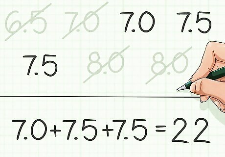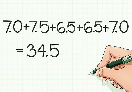 Add the rest together. Find the sum of the remaining scores. Example: 7.0 + 7.5 + 7.5 = 22.0