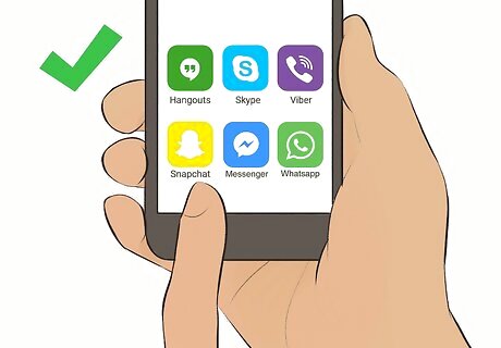 Opt for a video chat app for little to no-cost calls on a computer. Video chat apps offer direct communication for little to no cost, although both parties must have a webcam or phone with a camera and microphone. Make sure you have a good internet connection to prevent breakups and distortion and get a good microphone so your contact can hear you. Common video chat apps include Skype, WhatsApp, Google Hangouts, and FaceTime (specifically for Apple devices). Video chat apps are usually completely free unless you call a landline or mobile phone. This option is best if both parties have the same program installed on their computer or phone, as it allows for instant no-cost calls.