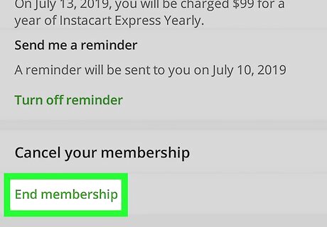 Tap End Membership. Once you’ve canceled your subscription, you will no longer be billed by Instacart. You can continue using Instacart Express through the last day of the current billing cycle.