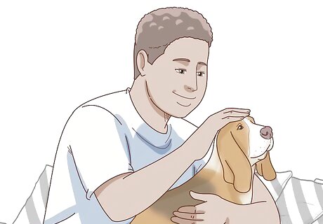 Give your dog plenty of attention and positive reinforcement. Basset Hounds don’t like to be alone for extended periods of time. Though they’re relaxed dogs, they are sensitive and need lots of positive encouragement. Try to avoid scolding your dog if it does something wrong or doesn’t obey a command. They were bred to follow scents independently, so they can be stubborn by nature. Since they’re emotionally sensitive dogs, excessive scolding can also lead to your Basset Hound shutting down or acting distanced.