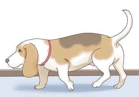 Monitor your dog for signs of intervertebral disc disease (IVDD). Basset Hounds are at a high risk for developing IVDD, which is a condition where the discs between the bones in the dog's spine rupture and impinge on the spinal cord. Signs of IVDD include changes in gait, weakness in the limbs, paralysis, and back pain. IVDD can be a surgical emergency, so get your dog help immediately if you suspect it. Watch your dog walk to see if its gait is off. Notice if your dog has trouble standing or cannot stand for long. Get immediate help if you notice signs of paralysis or back pain.