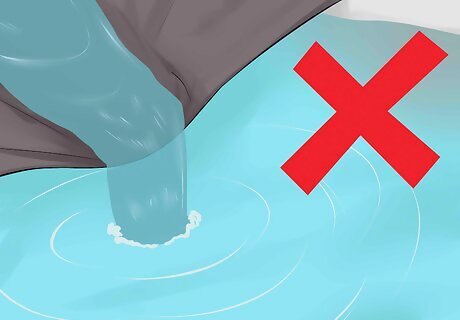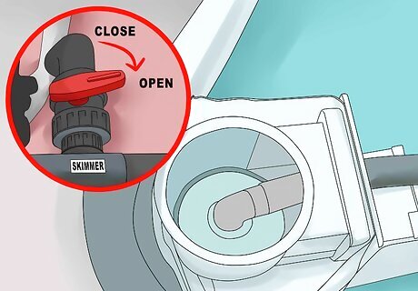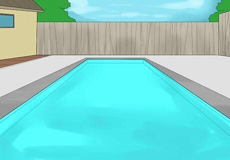 Clean the pool. Wipe down or brush the sides first and then the pool floor to loosen dirt, algae and other contaminants. Skim the surface of the water and vacuum the floor to remove the debris. When left in your pool, algae and other contaminants can stain the surfaces and leave lasting damage.