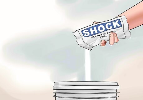 Shock the water. Add a shock product, following the product instructions to determine the proper amount according to the pool size. Shocking raises the chlorine levels.